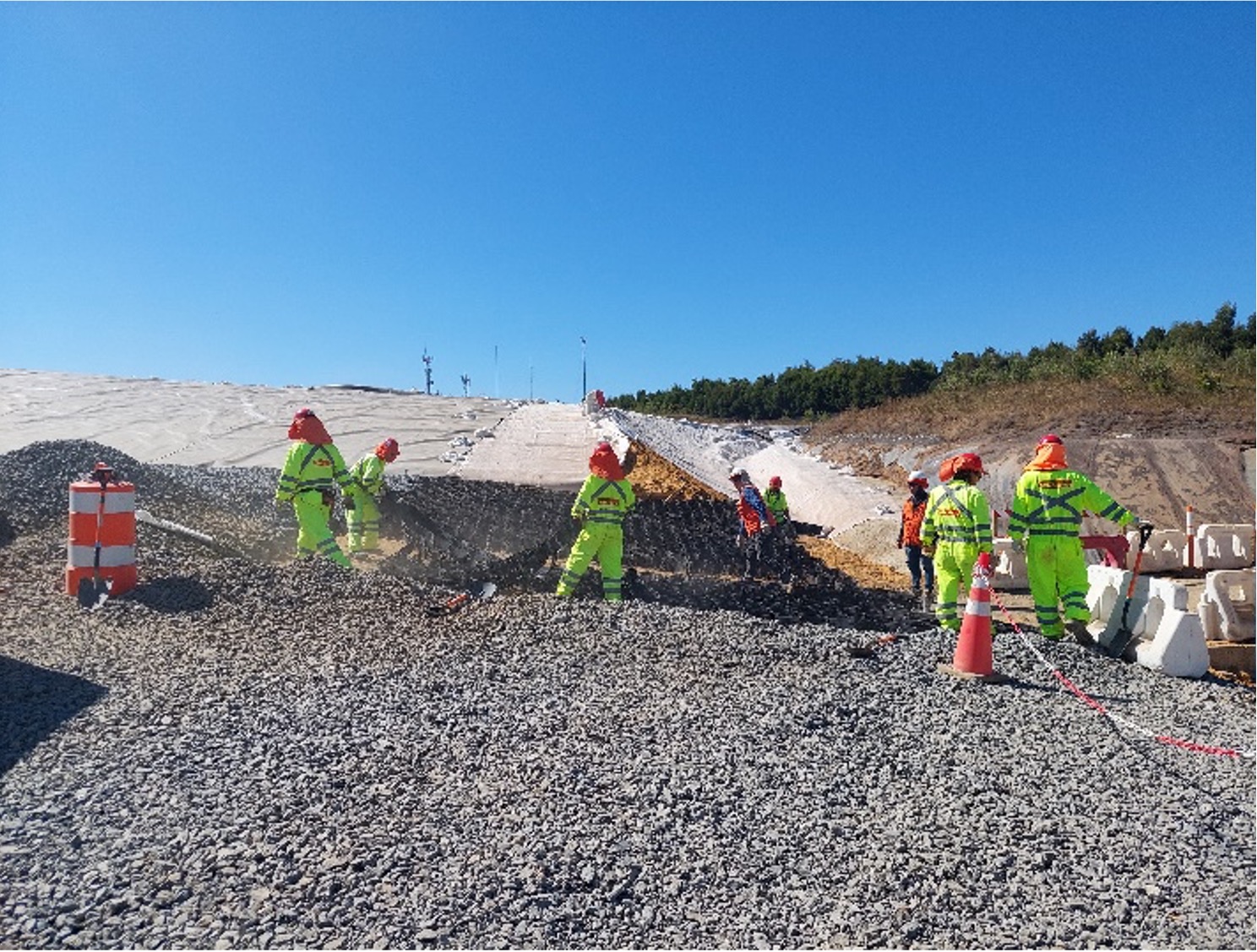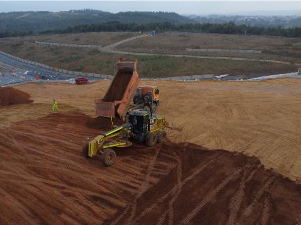 Como parte de las capas construidas, se encuentran: rellenos de tipo 2 y 4 provenientes de los yacimientos entregados por ENEL, relleno tipo 3 (grava) y relleno tipo 5 (sustrato vegetal compost). Por otra parte, dentro de los geosintéticos se encuentran: la geocelda rellena con grava, geodrén y geomembrana impermeable.
