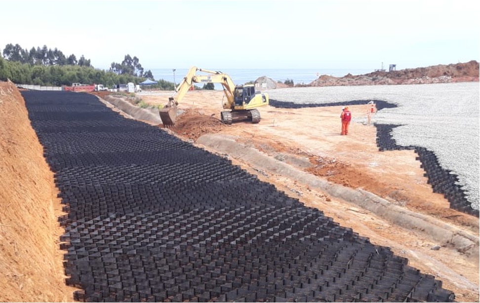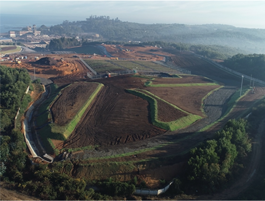 Ubicado en Coronel, VIII Región, el proyecto consideró la cobertura de una porción aproximada del 60% del vertedero de cenizas del complejo Bocamina actualmente en operación, por medio de distintas capas de relleno y de geosintéticos, con terminación de una capa de sustrato vegetal para una posterior plantación. Como parte de estas distintas capas se encuentran rellenos de TCN, grava y sustrato vegetal (compost), y por parte de las capas de geosintéticos se encuentran geocelda, geodrén y geomembrana.
