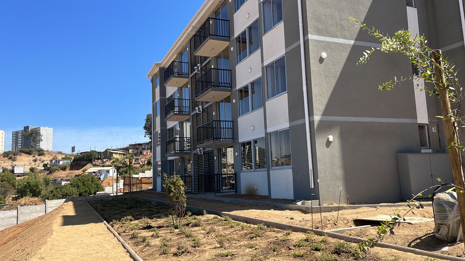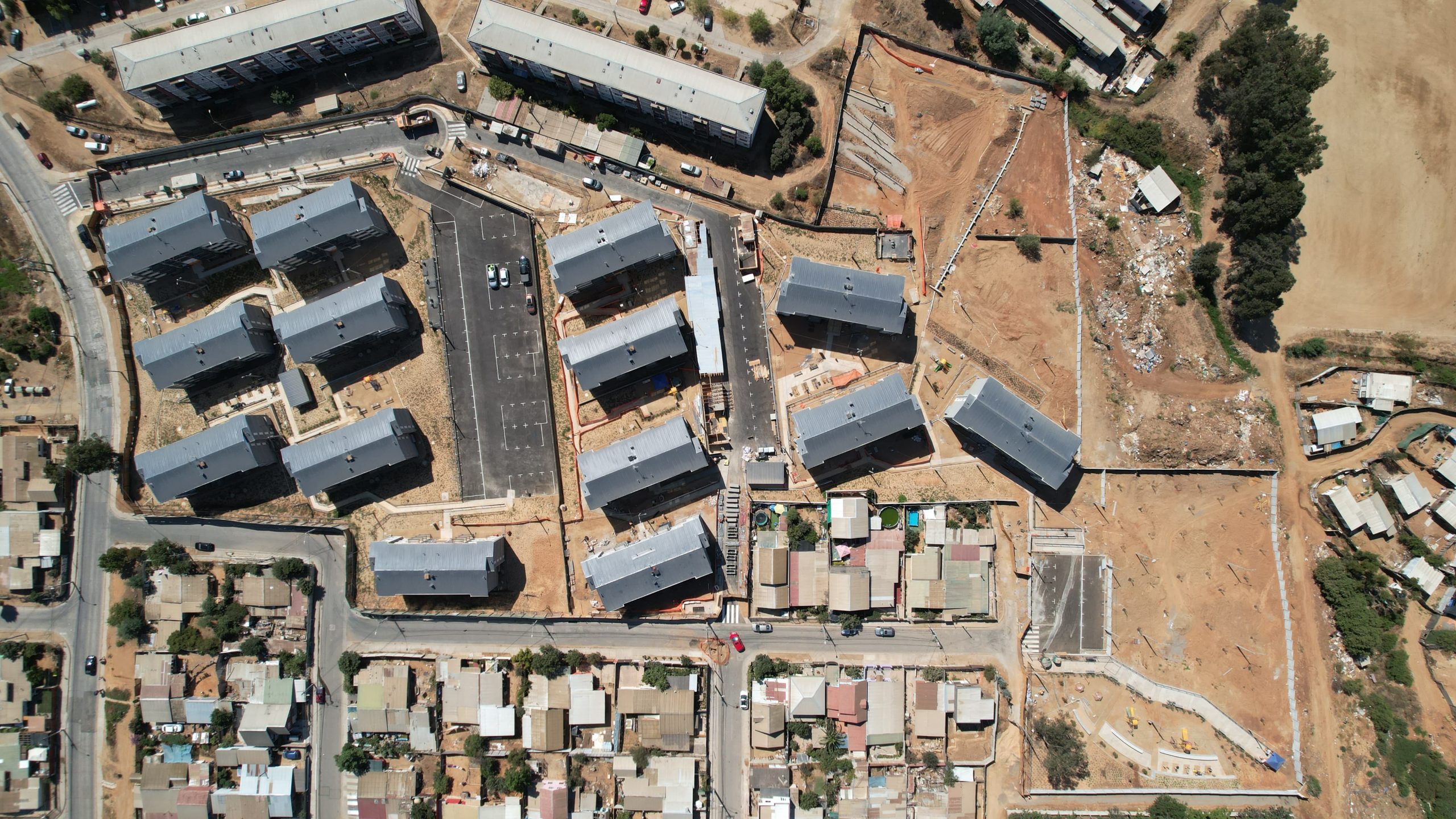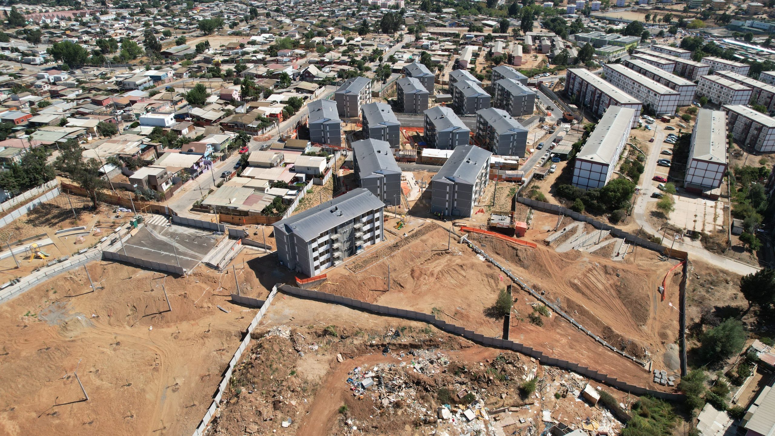 Es un proyecto de viviendas sociales que consiste en trabajos de urbanización y edificación para generar un loteo y posteriormente construir 2 condominios de 7 edificios cada uno.