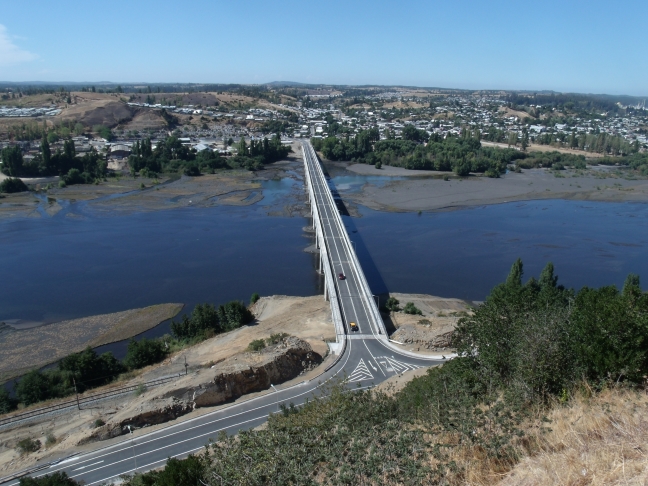 En este proyectó se construyó un nuevo puente de 590m de longitud, distribuidos en 15 tramos simplemente apoyados. La infraestructura consta de dos estribos con fundación directa y 14 cepas fundadas en base a pilotes preexcavados in-situ de 1,5m de diámetro. Además contempla la ejecución de los accesos, cambios de servicio de alcantarillado y agua potable.